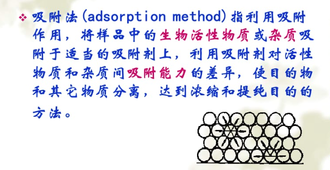 吸附法是提取经常选用的一种操作单元。提取是多种操作单元的结合。 吸附法是利用固体吸附剂处理液体或气体混合物,将其中所含的一种或几种组分吸附在固体表面,使混合物各组分分离的过程。 吸附的目的一方面是将发酵液中的发酵产品吸附并浓缩于吸附剂上,另一方面利用吸附剂除去发酵液中的杂质或色素物质、有毒物质(如热原)等。